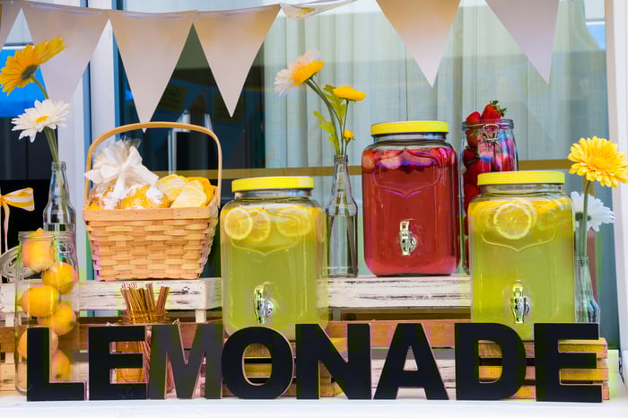 A lemonade stand makes money by selling lemonade.