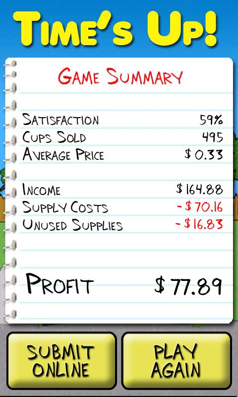 Is it an illegal to do a lemonade stand? So you'll need to check in with your city or local government to find out what the process is and how much it costs. A lemonade stand makes money by selling lemonade. Apr 29, 2020 · how much does a lemonade stand permit cost? How much does lemonade sell for? Where can you get a lemonade stand permit? The exact regulations for a lemonade stand permit vary by location. Yes, technically you do need a vendor's permit to sell lemonade in pretty much any community around the country. Do you need a license for a lemonade stand? First, the actual fees can be exorbitant. Lemonade is typically sold by the glass or cup. No way you can make a profit if the packaging alone costs nearly the amount you are charging and no way am i paying extra because your kid is too precious to use plain cups, average ice and a card table with a cheap table cloth. Nov 17, 2019 · how much money do you need to start a lemonade stand?